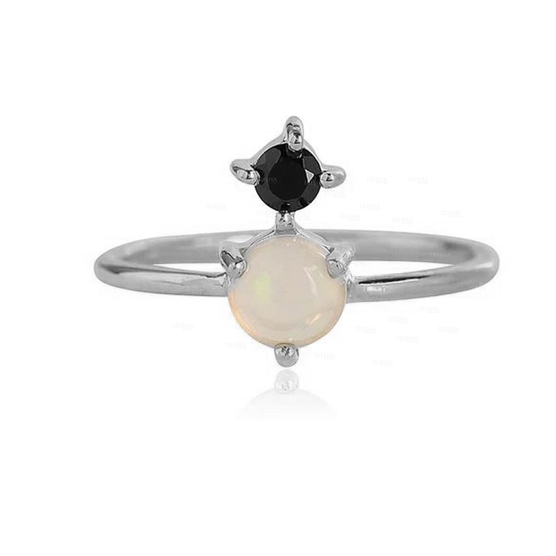 14K Gold Genuine Black Diamond And Opal Gemstone Stacking Ring Fine Jewelry
