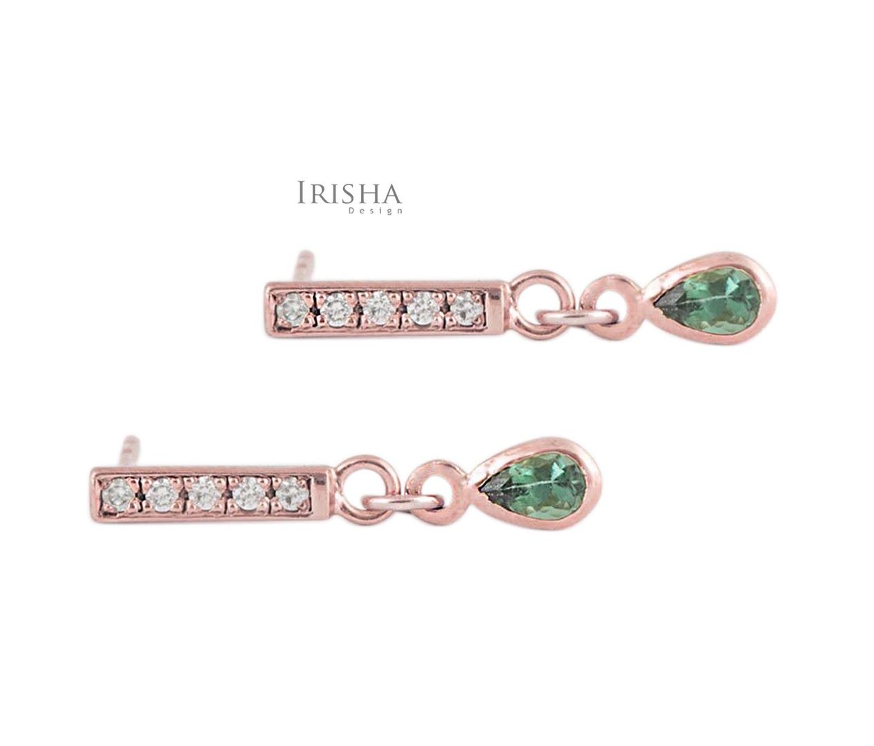 Diamond May Birthstone Emerald Bar Dangle Earrings In 14K Gold Fine Jewelry